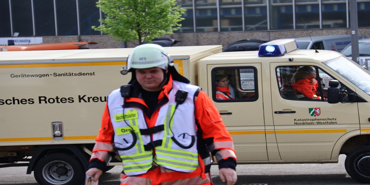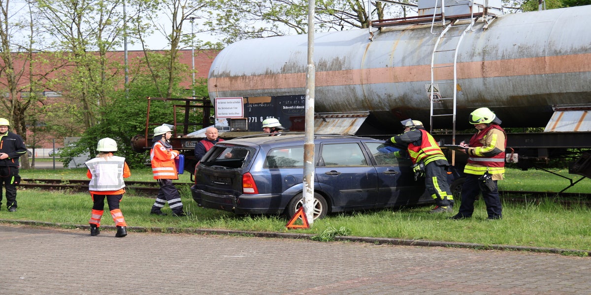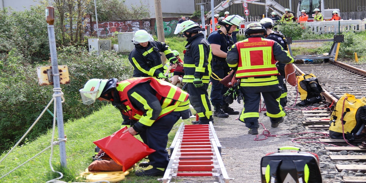 Am gestrigen Samstagvormittag (13.04.2024) fand auf und um dem Gelände der Feuerwache 2 in Krefeld-Linn eine Einsatzübung diverser BOS-Organisationen statt. Übungsszenario war ein Verkehrsunfall zwischen einem PKW und einem Eisenbahnwagon mit einem Massenanfall von Verletzen (MANV), einer eingeklemmten Person und einem Verstorbenen. Ein weiterer Teil der Übung waren Personen suche mittels Rettungshunden, da sich mehrere Verletzte aus dem PKW befreien konnten und anschließend den Unfallort verlassen haben. Um diese Verletzen zu finden, wurden mehrere Teams mit Suchhunden (Mantrailern) in das Umliegende Gebiet entsendet. Im Hafengebiet konnte einer der Hunde einen der gesuchten Verletzten in Ufernähe des Rhein finden. Da sich die Rettung des Verletzen, aufgrund der Lokalisierung, schwierig gestaltete wurden weitere Einsatzkräfte der Feuerwehr und des Rettungsdienstes hinzugezogen um gemeinsam den Verletzen aus seiner Situation zu retten. Auch die anderen gesuchten konnten im Bereich Linn gefunden und versorgt werden.