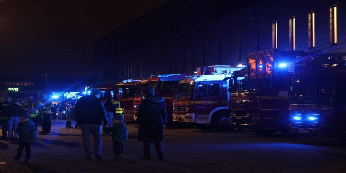 Die Berufsfeuerwehr Krefeld begrüßte den Konvoi mit viel Blaulicht und vielen leuchtenden Kinderaugen!