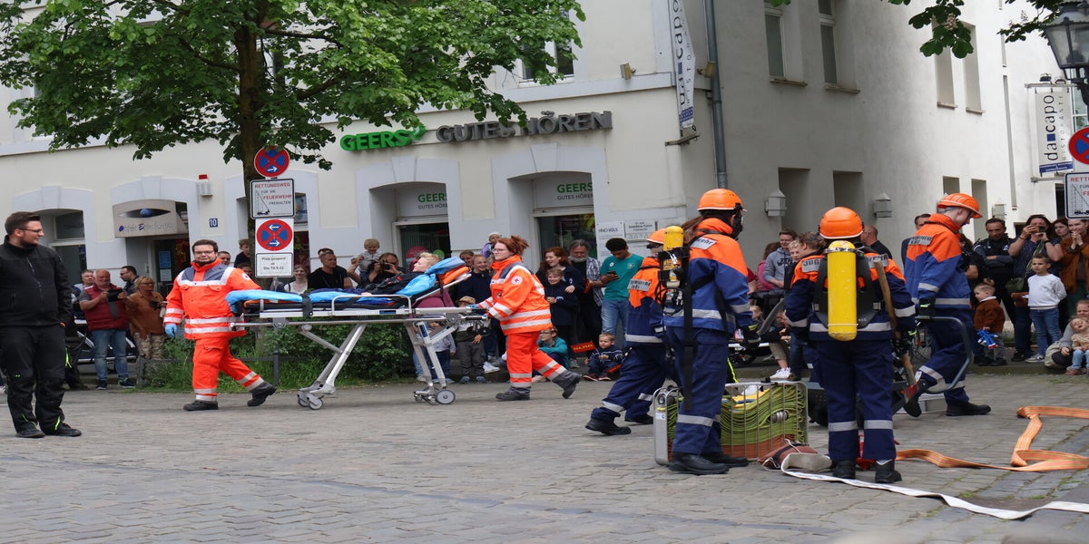 Neben zwei Übungen der Freiwilligen Feuerwehr und der Jugendfeuerwehr konnten sich Groß und Klein einen Einblick und Überblick über die Arbeit der Einsatzkräfte und deren Hilfsorganisationen verschaffen und sich die Einsatzfahrzeuge und die Ausrüstungen einmal genauer ansehen. Sowohl Kleine als auch Große Besucher kamen auf ihre Kosten, von Entenangeln über eine Hüpfburg, Wunden schminken bishin zum Üben einer Reanimation gab es viele Mitmach-Aktionen.