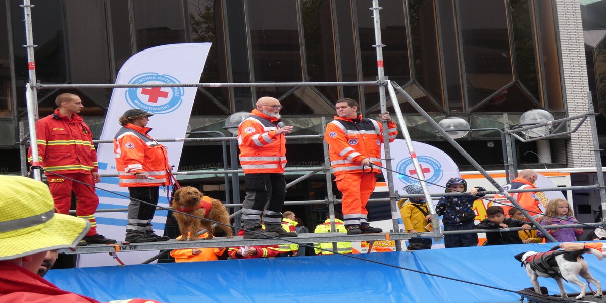 Am gestrigen Samstag (10.09.2022) fand der Katastrophenschutztag 2022 unter dem Thema „Alarm“ in Krefeld statt. Austragungsort war der Theaterplatz und der Von-der-Leyen Platz in der Krefelder Innenstadt. Von 10 Uhr bis 17 Uhr waren das Deutsche Rote Kreuz, die DRK Wasserwacht, die Rettungshundestaffel des DRK, die Malteser, die Johanniter, der ASB, die Feuerwehr Krefeld, das THW, die DLRG, das Bundesamt für Bevölkerungsschutz und der Deutsche Wetterdienst auf den Plätzen mit Fahrzeugen und Informationsständen vertreten. Neben einer Fahrzeugausstellung konnte man gleich zweimal die gemeinschaftliche Übung aller Einheiten auf dem Theaterplatz bewundern. Übungsszenario war ein Verkehrsunfall zwischen einem Pkw, einem Lkw und einem Fahrradfahrer. Von der Bühne auf dem Von-der-Leyen Platz aus richtete der Oberbürgermeister Frank Meyer und die Staatssekretärin des NRW Innenministeriums einige Worte an die Hilfsorganisationen und an die Besucher. Des Weiteren hat sich die Rettungshundestaffel des DRK auf der Übungsfläche auf dem Theaterplatz präsentiert und gezeigt. Besonders gefreut hat sich die DRK Wasserwacht und die DLRG, denn ihre neuen Einsatzboote wurden auf dem Von-der-Leyen Platz von Oberbürgermeister Frank Meyer getauft. Weitergehend folgten zwei Showacts auf der Bühne vor dem Rathaus auf dem Von-der-Leyen Platz. Ein weiteres Highlight folgte gegen Mittag, der Innenminister des Landes Nordrhein-Westfalen Herbert Reul besuchte den Katastrophenschutztag und stattete jeder Organisation an ihren Ständen ein Besuch ab und kam mit den Kameraden ins Gespräch. Trotz des durchwachsenen Wetters kamen zahlreiche Besucher zum Katastrophenschutztag 2022 in Krefeld.