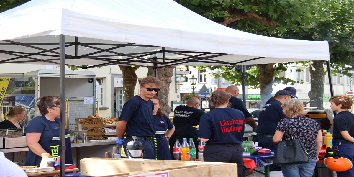 Auch für das leibliche Wohl sorgten der Löschzug Uerdingen wieder mit frischen vom Grill, Kuchen und kühlen Getränken.
