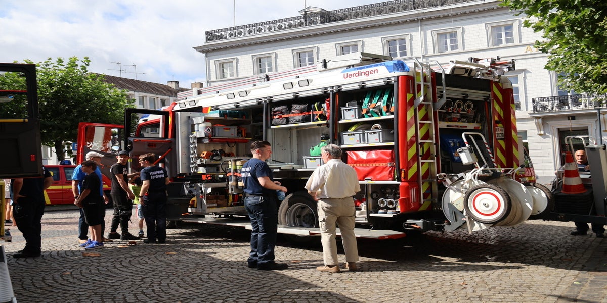 Am gestrigen Samstag (24.08.2024) ging wieder das jährliche Feuerwehrfest „Brandheiß“ des Löschzuges Uerdingen der Freiwilligen Feuerwehr Krefeld an den Start. Auf dem historischen Marktplatz, mitten im Herzen des Stadtteil Uerdingen, lud die Freiwillige Feuerwehr Uerdingen in der Zeit von 10-15 Uhr zu ihrem traditionellen, jährlichen Feuerwehrfest ein. Von einer Fahrzeug- und Geräteausstellung über Rundfahrten in einem Löschfahrzeug, Informationen über die Tätigkeit des Löschzuges und dessen spezial Aufgaben, einer Hüpfburg bis hin zu Wasserspielen – der Löschzug sorgte, wie in den vergangenen Jahren, für ein buntes Programm und eine menge leuchtende Kinderaugen. Erstmalig in diesem Jahr nahm auch die Polizei Krefeld an dieser Veranstaltung teil. Mit einem Funkstreifenwagen und einem Informations- & Präventionsstand über das Thema Verkehrssicherheit standen die Beamten den Besuchern für jede Frage bereit, somit konnten die Besucher mit den Beamten ins Gespräch kommen und sich einen Funkstreifenwagen aus nächster nähe ansehen.