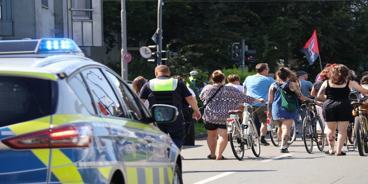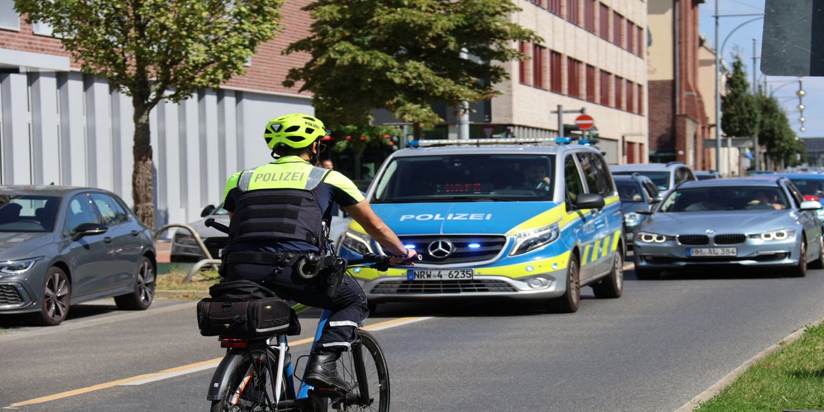 Die Polizei Krefeld begleitete die gesamte Veranstaltung mit mehreren Funkstreifenwagen, der Motorradstaffel und der Fahrradstaffel.