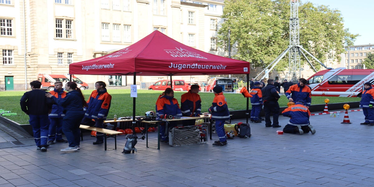 Ab 10:30 Uhr präsentierten sich u.a. die Feuerwehr Duisburg, das Technische Hilfswerk, das Deutsche Rote Kreuz, die Johanniter, die Malteser, die DLRG und viele weitere Hilfsorganisationen in der Innenstadt und stellten ihre Fahrzeuge und Gerätschaften zur Schau, führten Vorführungen durch, stellten ihre Tätigkeiten bzw. Aufgabenbereiche dar und standen den kleinen und großen Besuchern zu diversen Bereichen Rede und Antwort. Die Besucher kamen auch bei diversen Mitmachaktionen und Ständen auf ihre Kosten.