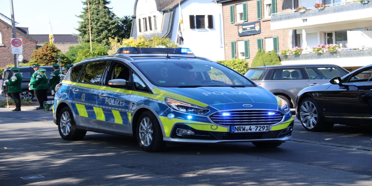 Während des Umzuges sorgte ein Fahrzeug der Polizei Krefeld für kurzweilige Straßensperren.