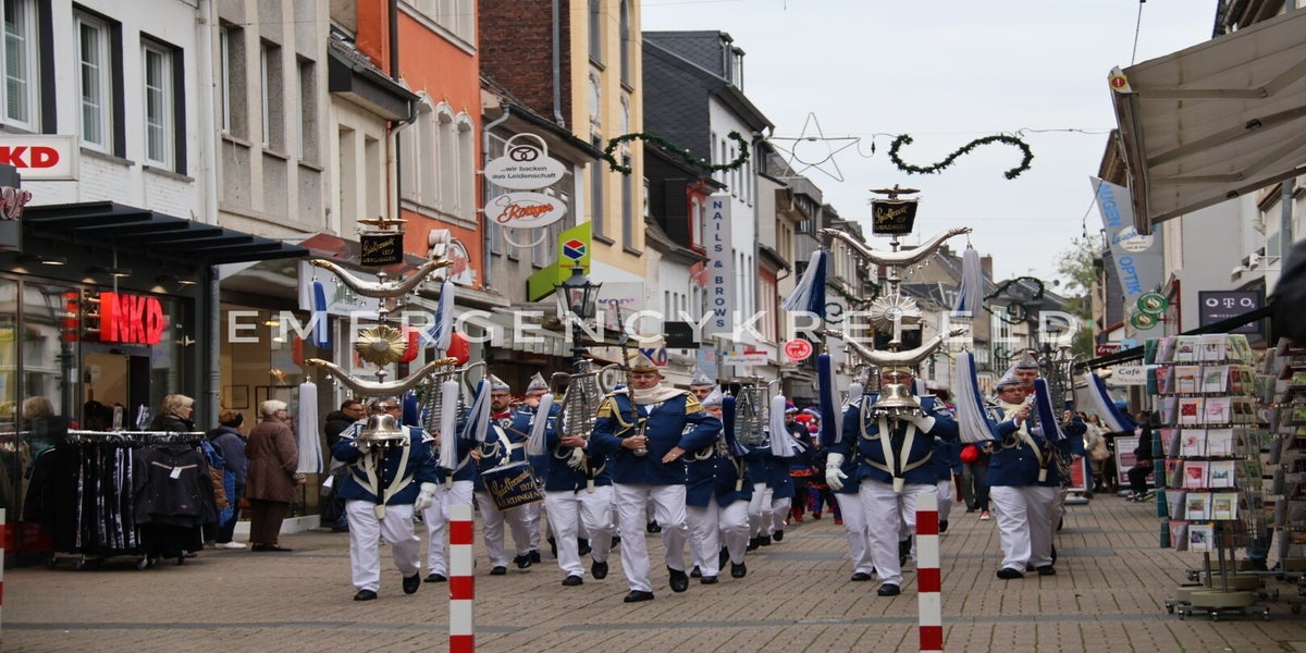 Gleich zu Beginn zog das Uerdinger Prinzenpaar mit Gefolge, die Uerdinger Kinderprinzessin mit Gefolge und die Spielfreunde Uerdingen einmal durch die Fußgängerzone bis hin zum Uerdinger Rathaus, wo sich alle Jecken sammelten.