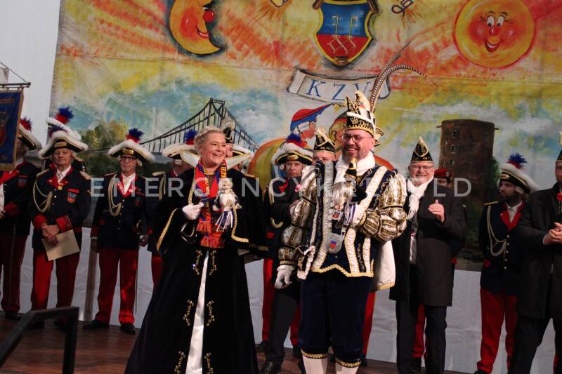 Im Anschluss begann nun das Programm im Festzelt gegenüber dem Rathaus. Gleich zu Beginn zog das Uerdinger Prinzenpaar für die Session 2024/2025, Dirk der III. und Lina die I. gemeinsam mit ihrem Gefolge in das Festzelt ein. Neben den Tanzeinlagen der beiden Begleitgarden, der KG op de Höh und der Braunschweiger Narrenzunft, präsentierten das nun regierende Prinzenpaar auch ihr neues Sessionslied.