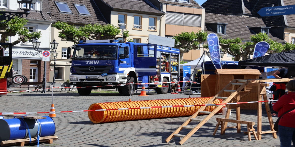 Einsatzkräfte der Bereitschaft des Deutschen Roten Kreuz, des Jugend-Rot-Kreuz, der Rettungshundestaffel, der Werkfeuerwehr des Chempark, des THW und der Freiwilligen Feuerwehr Uerdingen präsentierten sich auf dem historischen Marktplatz, vor dem Rathaus und der Oberstr. im Herzen des Stadtteils.
